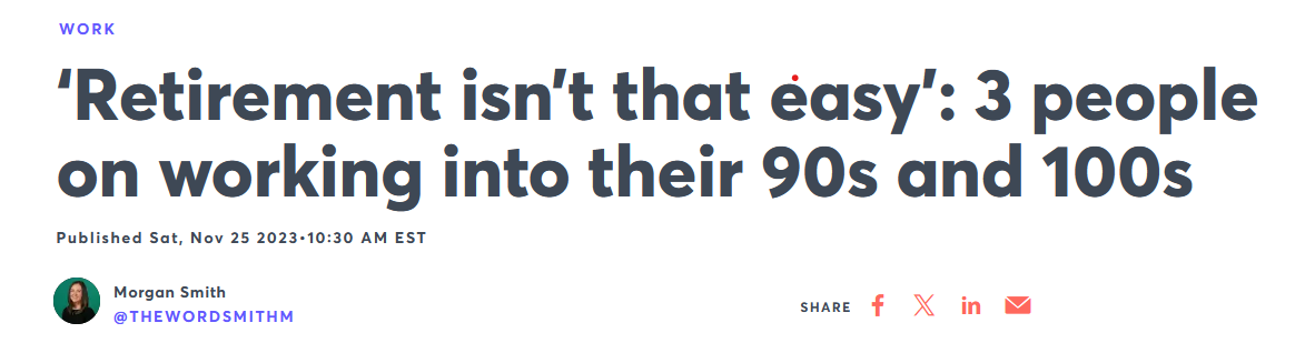 That chart is from the World Economic Forum. It’s not controversial data. The money we all produce, so much of which is already taken from us by bosses, has been decoupled even further from what we receive since the Reagan era. In other words, we could have the wealth we need to retire at a young age, if we simply got the fruits of our labor. But the capitalist class isn’t satisfied with taking a larger and larger chunk of what we make, they want more. Always more. So now, they want us to work until our dying breath.
