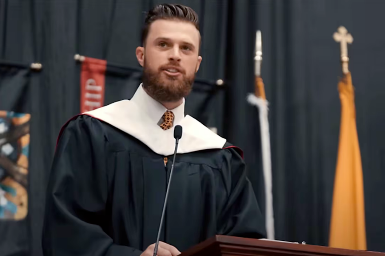 I know you’ve heard about Harrison Butker by now, and his embarrassment of a commencement speech at Benedictine College. You’ve probably seen the NFL kicker roasted six ways from Sunday for his misogyny, hypocrisy, and regressive nonsense. People have already written about his stupidity, everyone has memed his nonsense, and conservatives have applauded him for advocating for a return to the 1950s. That is exactly what he was doing, unashamedly. Butker delivered countless awful lines, saying, “Things like abortion, IVF, surrogacy, euthanasia, as well as a growing support for degenerate cultural values in media, all stem from the pervasiveness of disorder.” Which is an ugly mix of law and order rhetoric and sexism, a mix that makes no logical sense but scratches a certain itch in the mind of his conservative audience.